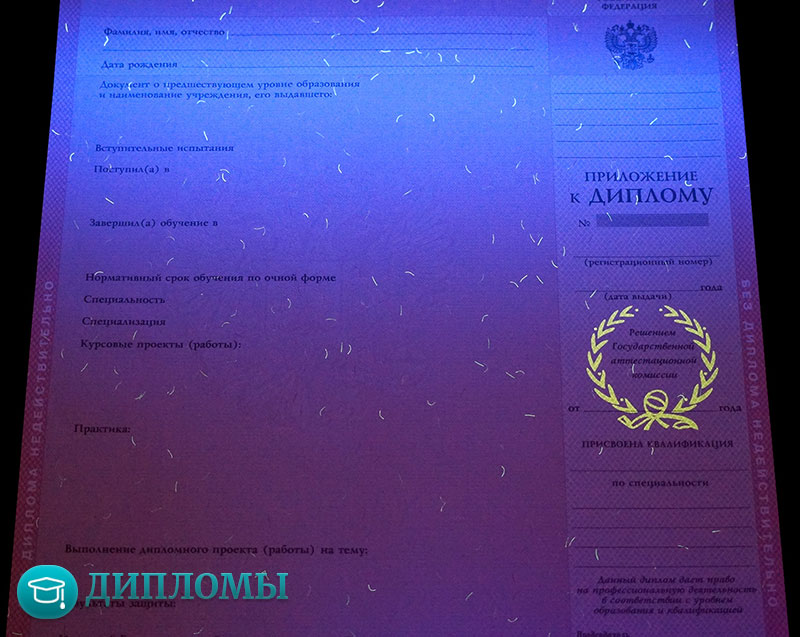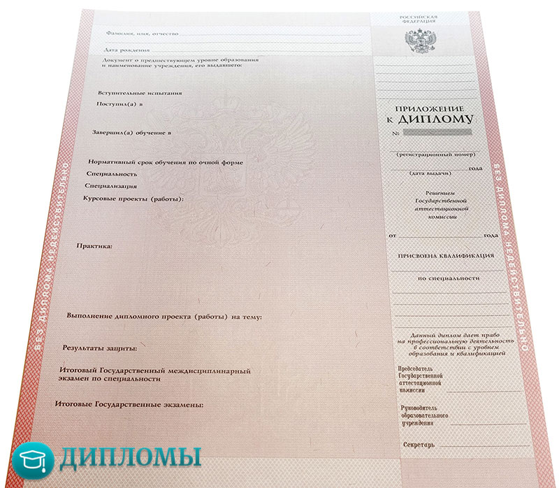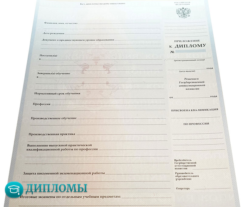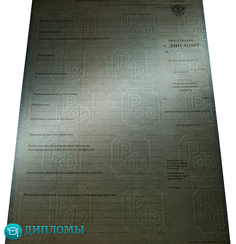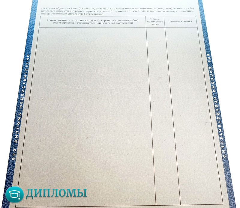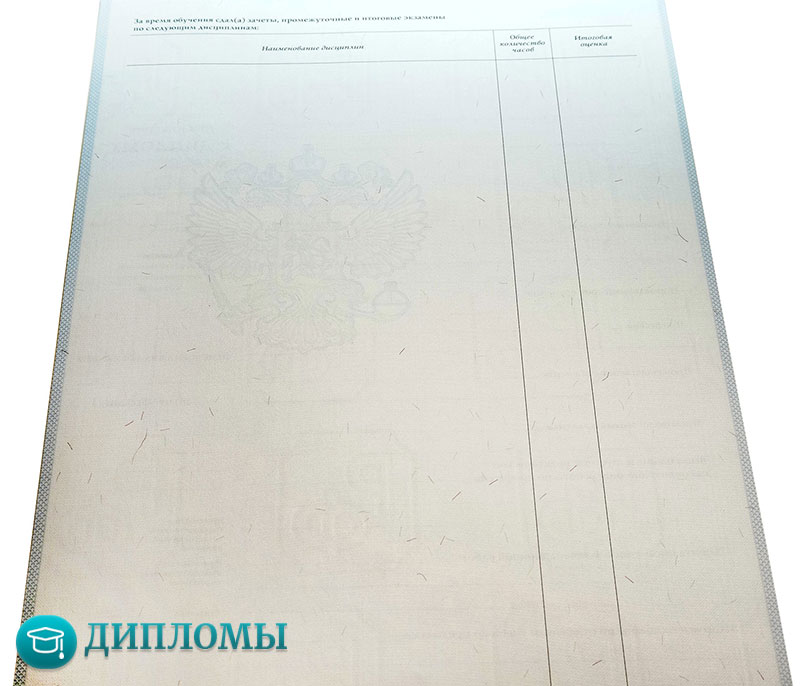 Работаем с официальными бланками, в которых учтены все требуемые законодательством знаки отличия (водяные знаки, голограмма) и соответствующие нормам шрифты. Обязательно скрепляем внесенную информацию мокрой печатью учебного заведения и подписями руководителей.