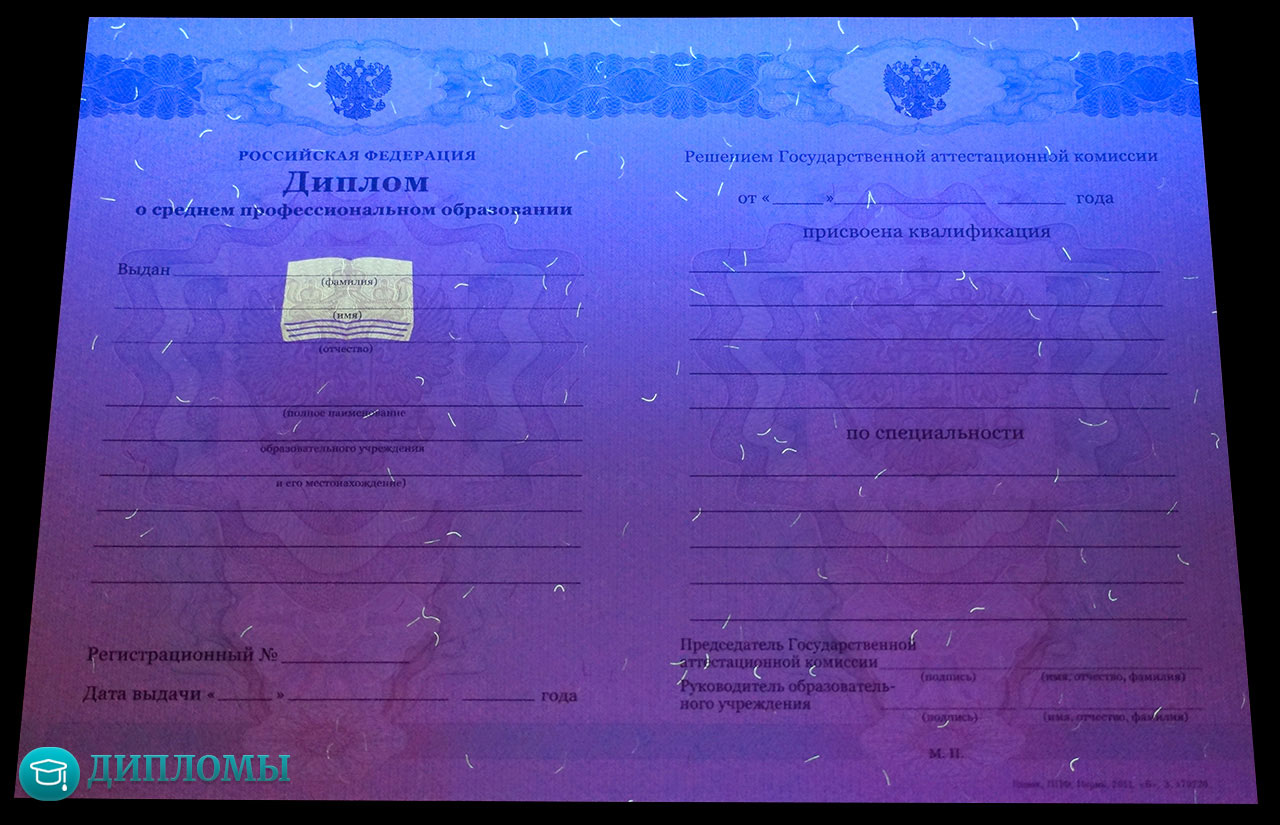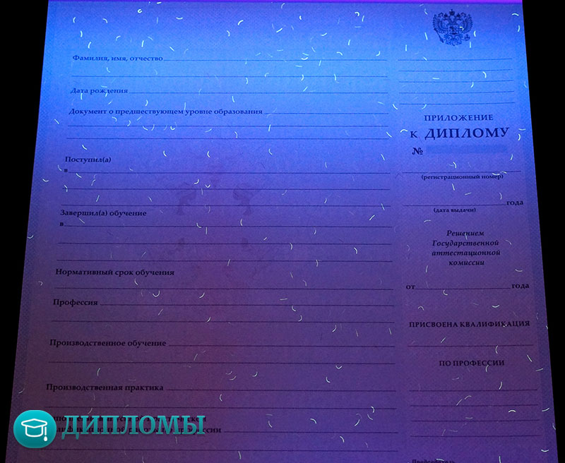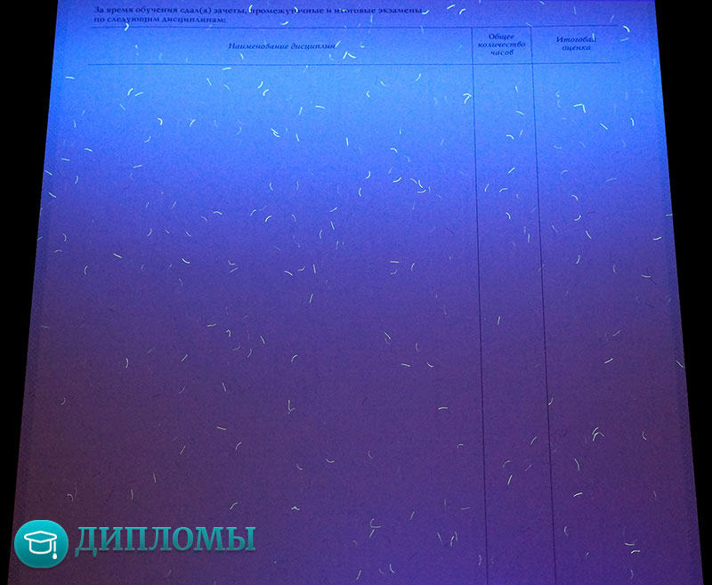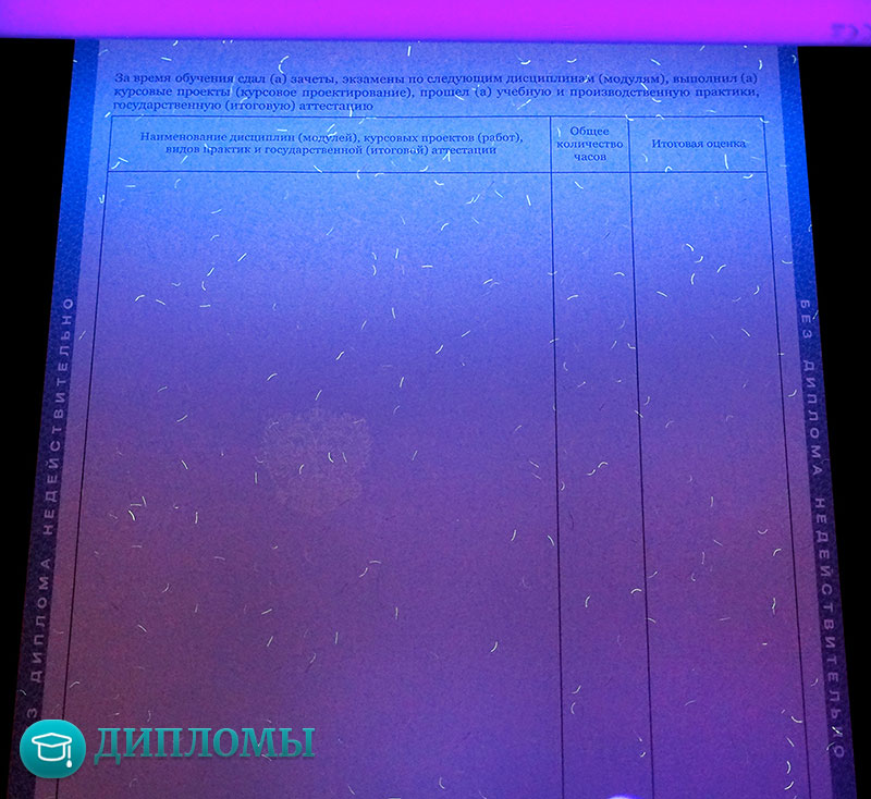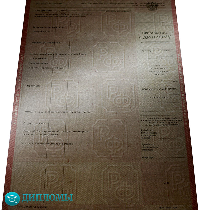 Работаем с официальными бланками, в которых учтены все требуемые законодательством знаки отличия (водяные знаки, голограмма) и соответствующие нормам шрифты. Обязательно скрепляем внесенную информацию мокрой печатью учебного заведения и подписями руководителей.